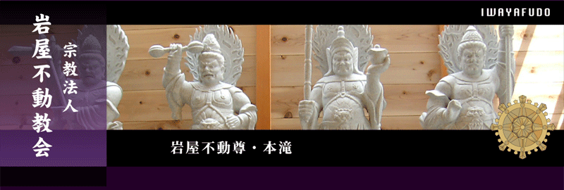 岩屋不動尊近くの山中にあります。教主が5年に及ぶ期間、水行をおさめられた御滝です。水行中の昭和38年、800年前に尼さんが修業された行石が姿を現わされました。教主が氷張るその行石に座すること数時間、不動尊の御代として世に出ることのなかったその尼さんの御力も加わって、教主の力量がいよいよ昂められました。