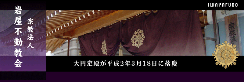 宗教法人・岩屋不動教会の発足から9年。二代目会長を中心に会員、信者の篤志によって信仰の場・大円定殿が平成2年3月18日に落慶しました。